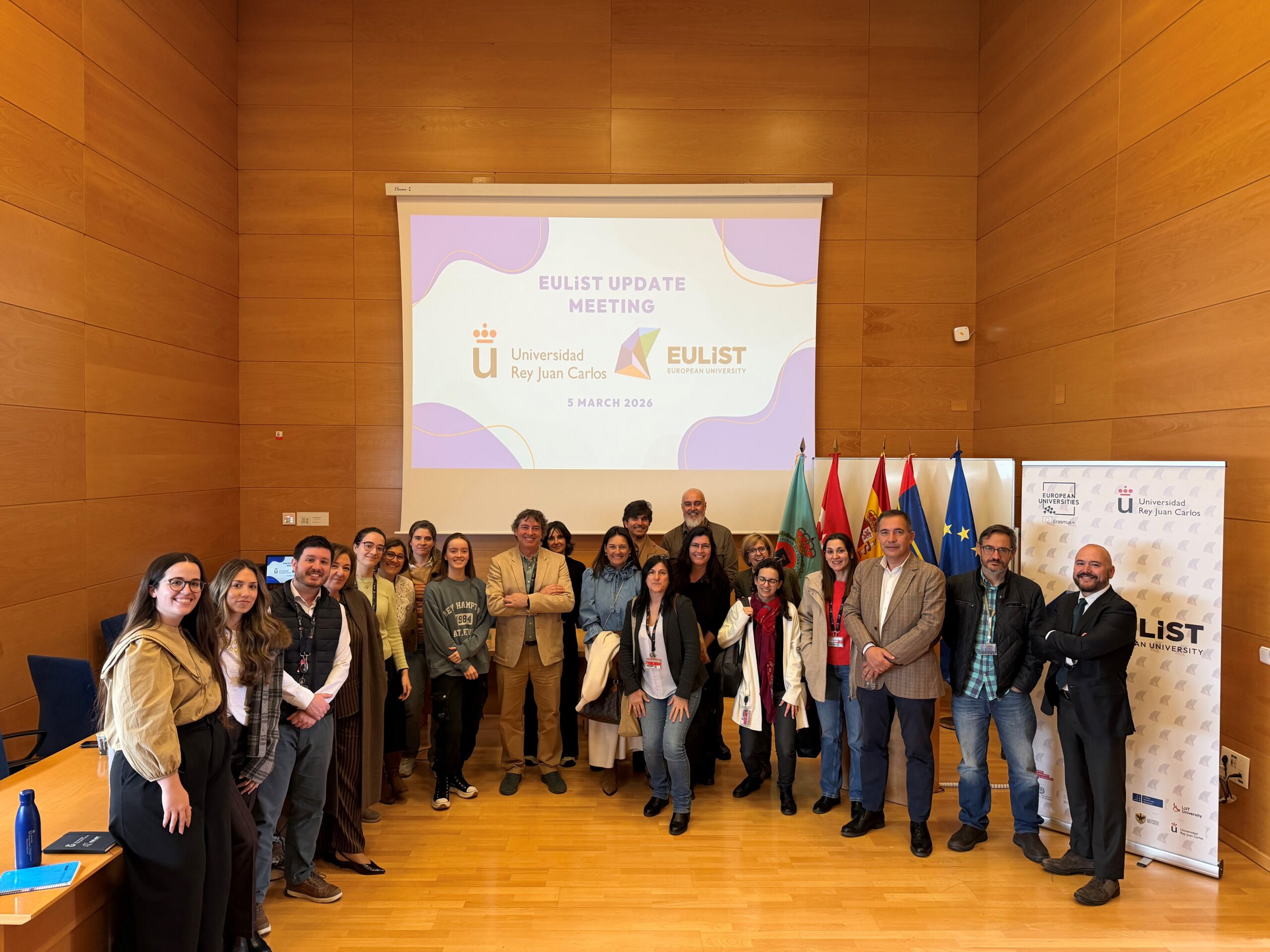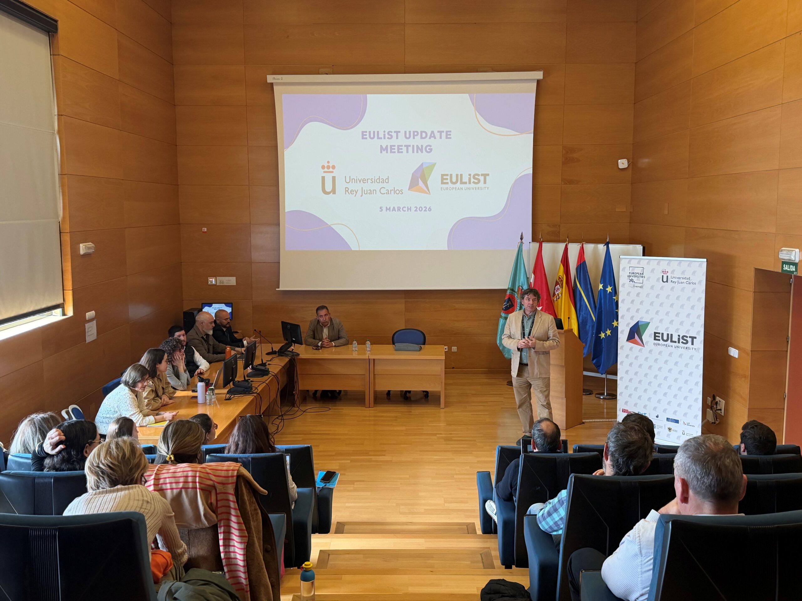 The Universidad Rey Juan Carlos (URJC) held the EULiST Update Meeting on March 5 with the aim of sharing with the university community involved in the project the progress achieved by the EULiST Alliance (European Universities Linking Society and Technology), as well as the main milestones and challenges that will shape its development in the coming years.